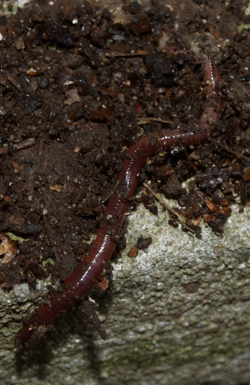 Vor vier Wochen fiel mir durch Zufall eine alte Plastik-Transportbox in die Hände, die nur ungenutzt herum stand. Schnell kam mir die Idee, daraus was Sinnvolles bauen zu können. Ich kaufte mir zwei weitere, etwas kleinere Boxen, solche mit verschließbarem Deckel. Dann bohrte ich in die Abdeckungen mit einem 8er-Bohrer ordentlich Löcher, ebenso in den Boden der oberen und mittleren Kunststoff-Box. Ich verschraubte den Deckel des unteren mit dem Boden des mittleren, sowie den Deckel des mittleren mit dem Boden des oberen Behältnisses. Nun legte ich in die mittlere Box ein altes Bettlaken, damit weder Würmer noch Kompost in die untere Box fallen konnten. Denn in dieser soll sich schließlich das Gießwasser sammeln, das von oben nach unten durch den Turm sickert.