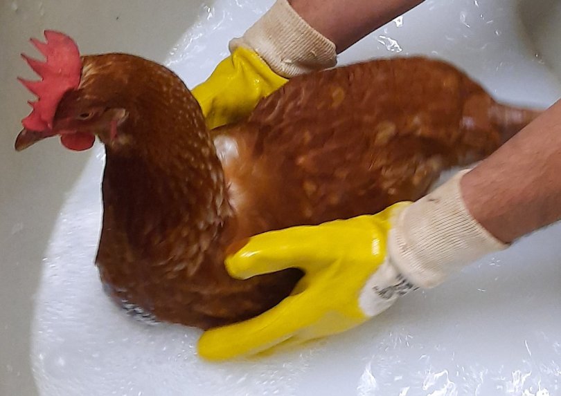 Gestern musste ich mich von der letzten alten Hühner-Dame verabschieden. Es war das Huhn, das ich noch vor einigen Wochen gebadet und somit vorm Tod gerettet hatte. Zwar lebte sie nach der Bade-Aktion noch einmal richtig auf, und legte sogar noch ein Ei. Dann aber wurde ihr Kamm blass, hing nach unten. Zwar fraß sie noch, doch vorgestern war sie sehr schwach, gestern lag sie tot im Stall. Der Hahn lief mit leicht bläulich gefärbtem Kamm durch die Gegend, was zeigte: Auch er war gestresst und nun muss sich die Hühner-Bande umstellen. Mal sehen, ob mein Baumhuhn, das vom Hahn immer gepickt wurde, nun ein wenig mehr Ruhe hat und eher akzeptiert wird. Die Henne war über vier Jahre alt, was für eine Lege-Rasse wohl schon ein hohes Alter ist.